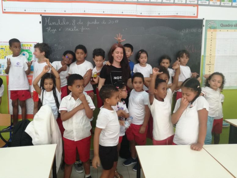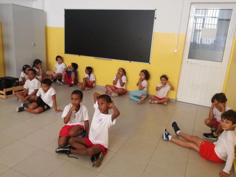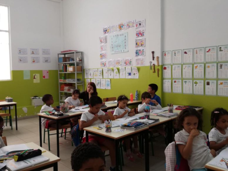 Implementação do projeto experimental com a turma do 1º ano da Escola Portuguesa do Mindelo com a professora Mafalda.