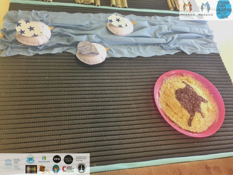 A história foi dividida em momentos e foram escolhidos os elementos mais significativos para a construção de um tapete narrativo.